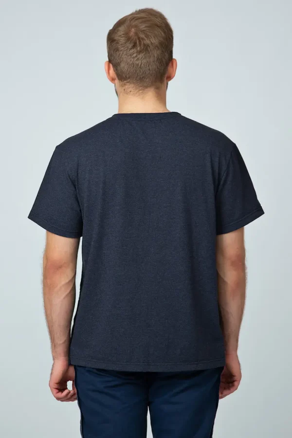 Футболка: классическая, прямой силуэт, короткий рукав, круглая горловина. Шов горловины по спинке закрыт бейкой.